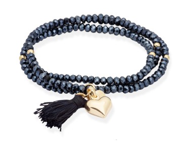 Pulsera ZEN AZUL NOCHE con elefante. Plata de primera ley (925) bañada en oro amarillo de 18kt