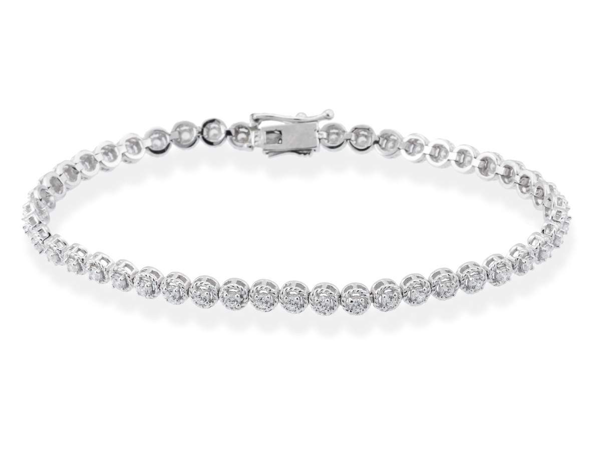 Pulsera de plata de primera ley (925) y circonita blanca. Dimensiones: 17,5 cm.