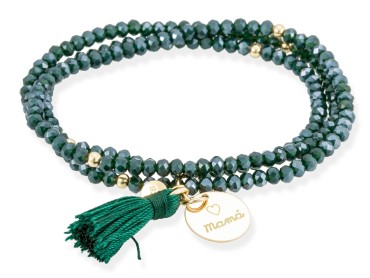 Pulsera ZEN VERDE con angel. Plata de primera ley (925) bañada en oro amarillo de 18kt